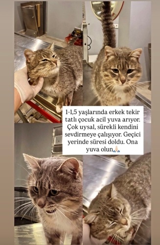 Aslan 1-1,5 yaşında erkek yakışıklı bir tekir. Sokakta oldukça zor bir durumdan kurtarıldı. Cins peşinde koşmayan, yavru olsun diye tutturmayan, bir can bakmanın ömürlğk sorumluluğunu alabilecek sevgi dolu bir yuva arıyorum. Kum kullanmayı bilşyor kuru mama yiyor. Sürekli mırlıyor ve kendini sevdirmeye geliyor. Kısır değil anca kısırlaştırmaya yardımcı olacağım. Şu soğuklarda bu hayvanın sokaklara dönmesini engelleyin. Tam bir ev kedisi olabilecek uysallıkta. Onun şansı siz olun.