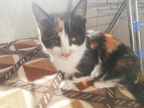 Doğuştan gözleri görmeyen 4 aylık calico (üç renkli) yavrumuz. inanılmaz sevgi yumağı bir çocuk. Geçici olarak bakılıyor. Engelli olması daha çok bakıma ihtiyacı olduğu anlamına gelmiyor. Sese ve bulunduğu ortama adapte olması hızlı.