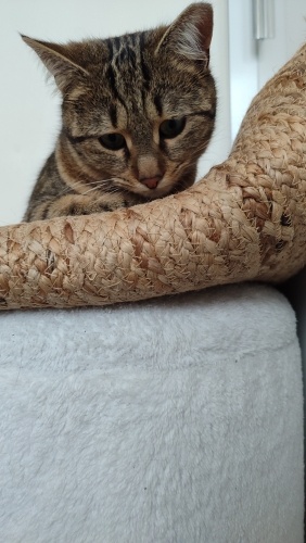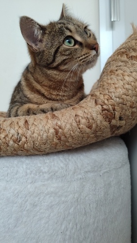 8 aylık dişi,kısır,sağlıklı.Kum kullanıyor,kuru mama yiyor.Çizme ve ısırma huyu yok.Görüp görebileceğiniz en yakın,en sakin ve iyi huylu minik.Sizi gördüğü an gurul gurul,hemen kucağınıza gelip, sizi patileri ve yüzüyle okşayıp, sev beni diye resmen çırpınıyor. Saatlerce öpün, sevin çıt yok, mest oluyor resmen.Diğer kedilere asla tepki vermiyor,çook uyumlu 2.kedi olarakta düşünebilirsiniz.Ben neden sahiplenmiyorım. Benim zaten 2 kedim var, ailem asla 3.kedi istemiyor, bir de gönüllü olarak sürekli sahiplendiriyorum bu minikleri. Yoksa bu canı asla kaçırmazdım
