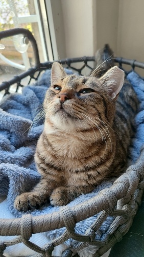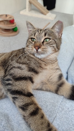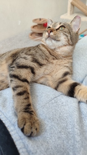 8 aylık,dişi,kısır,kum kullanıyor kuru mama yiyor. Kedilerle uyumlu, sevgi dolu,teması seven bir minnoş. Tırnaklama, eşyalara zarar verme huyu yok. Oyuncu, kucakta uyumaya, öpülmeye,sevilmeye bayılıyor.Zamanı ne yazık ki kısıtlı.