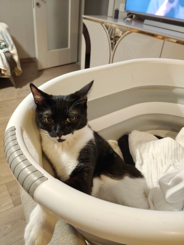 1 yaşında dişi kedi, kısır, aşıları tam. Çok sakin biraz ürkek alışınca kendini sevdiriyor.