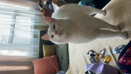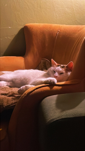 Bu kediyi İstanbul Kadıköyde evimin önünde acı acı bağırırken evden duydum ve indim mama verdim, kar yağıyordu, donmak üzereydi, tekrar acı acı bağırınca eve aldım. Ancak sanırım daha önce ev kedisiymiş çünkü evde çok rahattı ve gitmek istemiyor bense bakabilecek durumda değilim, mecburen sarman seçtim ama calico diyebiliriz, kısır, çok sakin varlığı yokluğu bir bi kedi. Lütfen ona yuva olalım. Bir kaç haftaya sokağa bırakacağım üzülerek, tekrardan yuva bulamazsam… Lütfen WhatsApp üzerinden iletişime geçin 😢