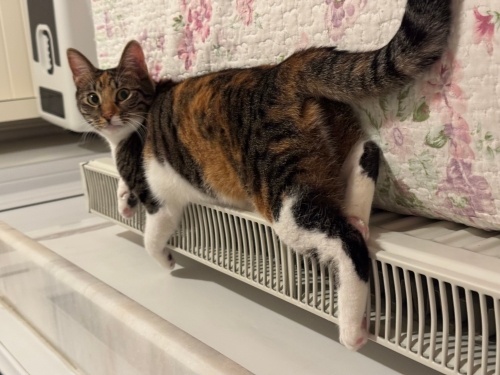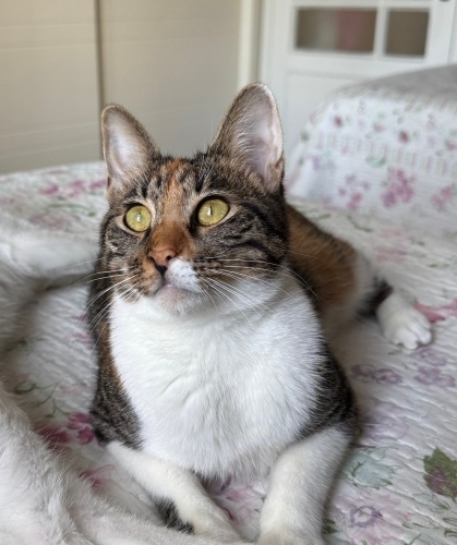 1 yaşlarında, kısır, çipli. Kedilerle arası iyi, insanlarla mükemmel. Teması seven, sırnaşık bir kedi. 4 aylıkken hamile kaldı, çok hasta olduğu için korumaya aldım. Sokakta yaşayamayacak kadar naif bir kedi. Hamile olduğu için korumaya aldığımdan beri ( 7 aydır) kapalı bir odada yaşıyor, özgürce koşup oynayabileceği bir yuvası olsun istiyorum. Isırma, tırmalama gibi huyları yok. 2. veya 3. kedi olmaya çok uygun. Takip ve cam-balkonlara kedi teli veya file şartıyla yuva arıyorum.