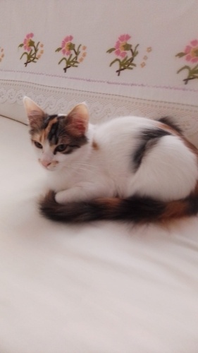 Yaklaşık 4 5 aylık arasında dişi uysal bir dişi kedi sokaktan bulundu. İç dış paraziti yapıldı 1 aydır evde bakılıyor. 3 kedi daha olduğu için zor oluyor ömürlük bir yuva arıyoruz sokağa atılmasını istemiyoruz