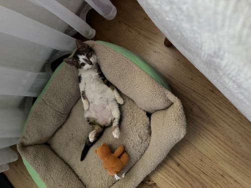 Sokakta kötü halde bulup tedavi ettirdiğimiz minik kıza onu asla terketmeyecek kalıcı sıcacık yuvasını arıyoruz.iç dış parazit aşısı yapıldı.evimizde 2 kedimiz daha olduğu için bu yavruyu sahiplendirmek zorundayız .
