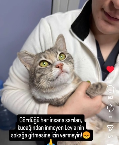O sımsıcak, sevgi dolu bir CALİCO❗️Yaklaşık 6-7 aylık. İsmi:LEYLA. KISIRLAŞTIRILDI‼️ Her gördüğüne sarılarak onu (-12) derecede sokağa atan kalpsiz sahibinin yerine, gerçek ve ömürlük bir anne bulmayı diliyor. Ev terbiyeli. Klinik bakımları yapıldı, Saglık sorunu YOK ‼️Korumaya alındığı yerde de çok fazla zamanı yok❗️Leyla''ya bir ömur sahip çıkarak onu güvende tutan, sevgi ve şefkatiyle sarmalayan pamuk kalpli meleği sen olur musun? İletişim tel:5078467801 WATSAPTAN KENDİNİZİ TANITIR MISINIZ⁉️YASALAR GEREĞİ ÇİP VE TAKİP ŞARTI VARDIR ‼️