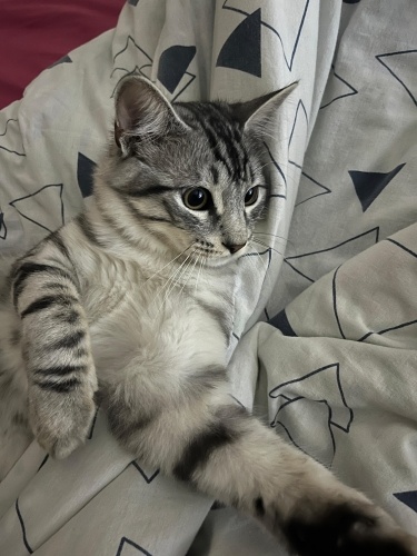 Kedimin aşıları tam, hiçbir şekilde yabancılık çekmeyen bir kedi eve misafir geldiğinde bile kendisiyle oynasını isteyen kendisini sevdiren bir kedi. Oyuncağını fırlattığınızda alıp size getirir ve tekrar atmanızı bekler :) parmak şıklattığınızda da hemen yanınıza gelir. Biraz temas seven bir kedi, yanınızda ve size yaslanarak uyumayı sever ama gece yanınızda yatmaz. Çok akıllı ve sevimlidir 🥲