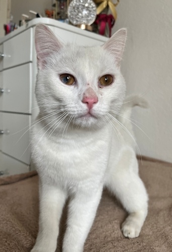 Beyaz renkli bir gözü mavi karışımlı kırma tahmini 1 yaşına yakın erkek kısır değil sokakta buldum çok sakin ve uysal bir kedi sokaktaki diğer kediler dövmüş kıyamıyorum bırakmaya ama benimde kedim olduğu için sahiplenemiyorum ona güzel bakılabilecek bi yuva arıyoruz