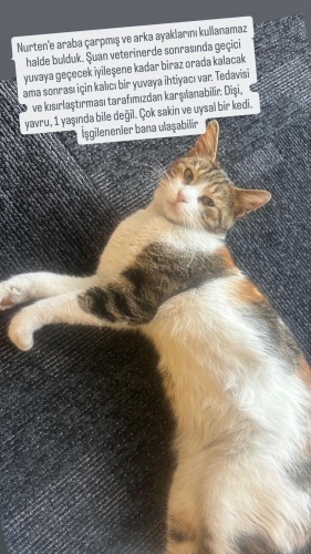 Bu güzel kız şuan geçici yuvada, geçirdiği kazadan dolayı yürümeden en az 3 hafta kafeste kalması gerekiyor.Bu süreçte bakılacak ama sonrası için bir yuvası yok. İstanbul'un herhangi bir yerine teslimatını yapıp kısırlaştırmasını da karşılayabiliriz. Tekrar sokağa dönememesi için ona yuva olur musunuz ?