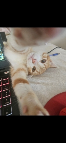 Sokakta arka bacağı çatlak halde bulduk. iç dış parazitleri yapıldı, bacağı iyileşti, şimdi onu sevecek ailesini arıyoruz. Çok sosyal, insanlari sever, oyuncu bir kedidir. kumu, puseti, tırmalama tahtası, oyuncakları, maması beraber verilecektir.