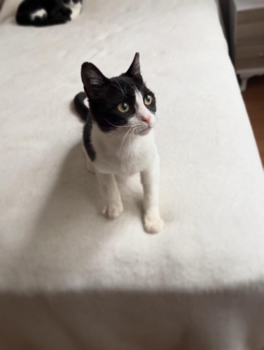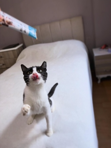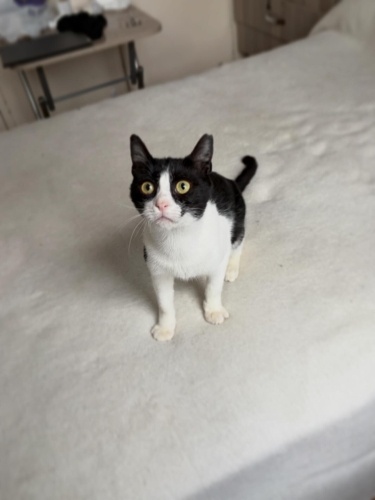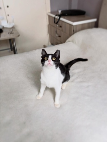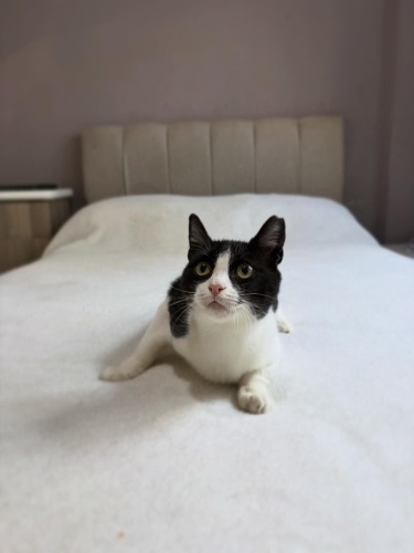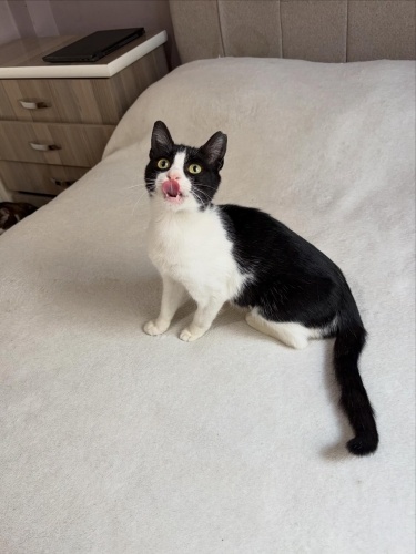 6 aylık dişi kısır smokin. İç dış paraziti kuduz aşısı yapıldı.Sokağa atılmış açlıktan ölecek halde bulup korumaya aldık. Çünkü ne kendini savunmayı ne de hızlı davranıp yemek kapmayı bilemeyecek kadar saf bi kız. Ev ortamında da öyle. Çok sakin,diğer kedilerle uyumlu. Sesi çıkmayan zararı olmayan bir kız. Alın omzunuza koyun koyduğunuz gibi kalır. Kucağa geliyor kendini sevdiriyor. Minyon tipli küçük bir kız olarak kalacak. 2.-3. Kedi olabilir. Smokinlerin ne kadar harika kediler olduğunu bilen onu çok sevecek ömürlük yuvasını arıyorum