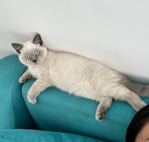 Kedimiz British blue point shorthair ırkından , vücudu kremsi beyaz renginde , başı ve patileri gri renkte . Biz 2 aylıkken sahiplenmiştik. Tüm aşıları ve iç dış parazitleri yapıldı. Pasaportuda mevcut . Çocuklarım için sahiplenmiştim zaten , ama oğlunda aslında olan alerji problemi dahada arttığı , sürekli hapşırma baş ağrısı burun akıntısı gibi şikayetleri nedeniyle hastaneye gittiğimizde kediye alerjisi olabildiğini söyledi. Kedimizi sevdiğimiz ve bırakmak için altı ay yine denedik . Ama olmadı . Oğlumun şikayetleri çok fazla olduğu dolayı üzülerek ona yeni ev bulmak zorunda kaldım. Kedi seven ve evde alerjisi olmayan arkadaşların ona sahiplenmesini istiyorum.
