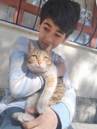 Evimizde iki tane kedimiz olduğu için alamıyoruz. Cins olduğunu düşünüyoruz kuyruğu kısa ve tüylerinde herhangi bir deformasyon yok doğuştan öyle olsa gerek , renkleri çok özel . Tek kulağının ucu kesik kısırlaştırılmış olma ihtimali var , yavrularıyla ilgili bir belirti gözlemleyemedik . Mama seçmiyor . Yaklaşık iki yaşında olduğunu tahmin ediyoruz . Muhtemelen daha önce şiddete maruz kaldı severken tepki vermiyor ama ayaklarımızı dikkatle izliyor . Yırtma , ısırma gibi huyları yok tehdit altında hissettiği anda sadece kaçıyor.