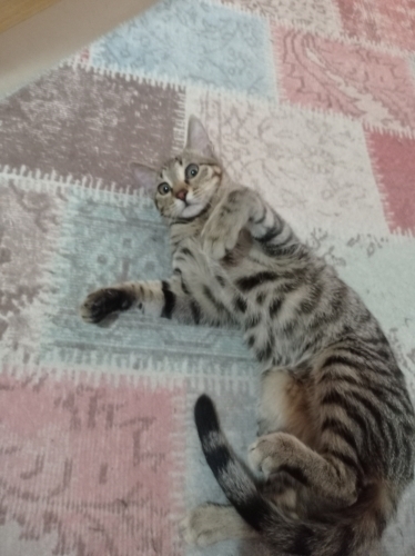 Çilek kız yaklaşık 5,5 aylık. Bütün kardeşleri yuvarlandı, ona da kalıcı sevgi dolu yuvasını arıyorum. Çok güzel, ince zarif, Mısır'daki piramit kedileri gibi ince uzun bacakları, güzel bir yüzü var. Huyu da güzel, ısırmaz, tirmalamaz, anne terbiyesi aldı, tertemiz, kum eğitimi oturmuş, nazlanmasi Yok. Bu güzel kızı ne istediğini bilen, sorumluluk sahibi bir aileye sahiplendirmek istiyorum.