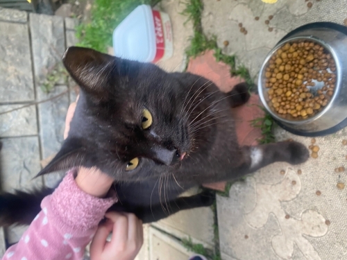 İnci kızımızı annemlerin sitesinin bahçesinde farkettim. Fark ettiğimde dudakları aşırı şiş haldeydi, tavşan dudak denir ya, hemen aldım onu veterinere götürdüm. Tedavisi yapıldı, dudaklarındaki ve ağzındaki enfeksiyon düzeldi. Sebebi bağışıklık sistemi imiş, ve bulaşıcı değil. Temiz bir ortamda yaşamını sürdürmesi gerekiyormuş. Enfeksiyon tedavisi bittikten ve iyileştikten sonra onu kısırlaştırdım. Maalesef tekrar bahçeye bırakmak zorunda kaldım çünkü ona bir yuva bulamadık. Tabi tekrar sokağa döndüğü için, ameliyat olduğu göbek bölgesi enfeksiyon kapmış, ağzında da enfeksiyonu başlangıcı olmuş. Onu tekrar veterinere götürdüm. Şu an tekrar tedavide. Artık sokaklara dönemez, veteriner de bu yönde görüş bildirdi, çünkü hijyen olmayan sokak ortamında her zaman enfeksiyon kapmaya açık. Ev ortamında bakılması gerekiyor. Temiz bir ortamda yaşarsa hastalığının tekrarlama riski çok düşük. Son derece sakin ve insan canlısı 1.5 yaşlarında siyah ve kestane karışık renkli kısır bir dişi kız. Bu kız artık sokaklara dönmesin, lütfen ona bir yuva bulalım.