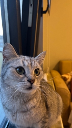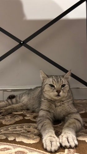 Çok uysal, insan canlısı ve sakin bir kedi. Ev ortamına hemen uyum sağladı. Tuvalet alışkanlığı var, tertemiz.