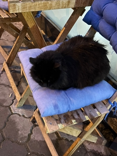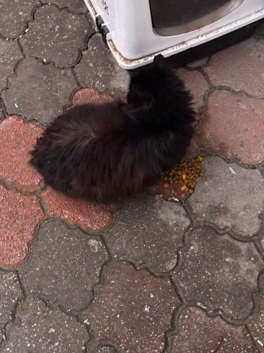 Rengi kızıl-siyah. Tüyleri sağlıklı yumuşacık kuru mama yiyor çok uslu kucağımdan inmiyor asla saldırgan değil. Pidecinin kapısında yatıp kalkıyor işlek caddede tehlike altında. Tek gözü de sıkıntılı görmüyor maalesef. Yakalamak çok kolay zaten sürekli kucağımda sahiplenmek isteyen olursa ben teslim edicem.