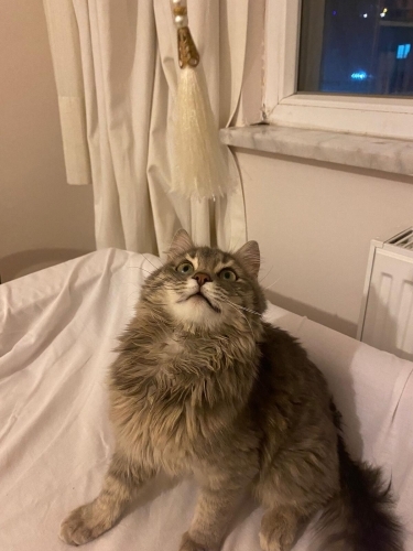 Site bahçesinde bulduğumuz insan canlısı uzun tüylü tekir sibirya kırması kızımız yuva arıyor