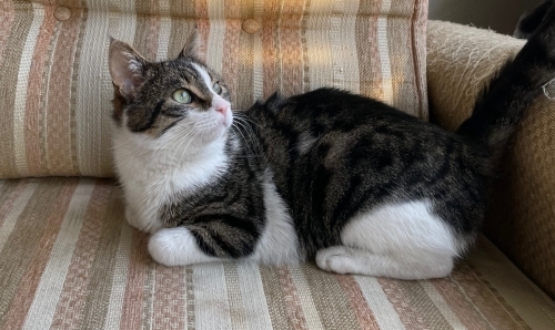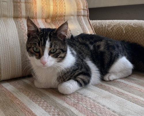 Muhtemelen 7-8 aylık, iç-dış parazit yapıldı. Daha kızgınlığa girmediği için kısırlaştırılma yapılmadı. Çok oyuncu ve meraklı, sevgi dolu, kucak delisi mırmır bir kedi.