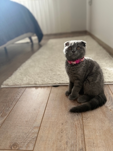 Gri renk kehribar gözlü 1 Kasım doğumlu 1 aydır bizde ancak bakamıyorum sevecek bir aile arıyorum hiçbir sorunu yok tuvalet ve kuru mama sorunsuz hallediyor taşınacağım tek olduğm için bakamıyorum