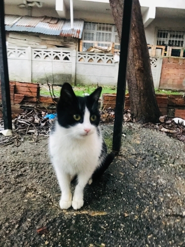 Ev kedisi market önüne bırakılmış market ana cadde kedi arabaların altında çok sevecen ve uysal bi kedi