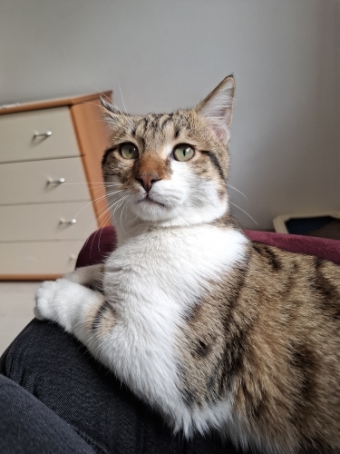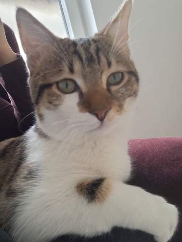 Acayip sevgi dolu 7-8 aylık kedi. Evde büyüdü. Acayip sevgi dolu, insancıl, sevilmeyi çok seviyor. Mırıl mırıl bir oğulcuk. Temas bağımlısı. İç dış parazit aşısı var. Yarın kısırlaştırılıyor. Ankara içi takip şartıyla sahiplendirilecektir.