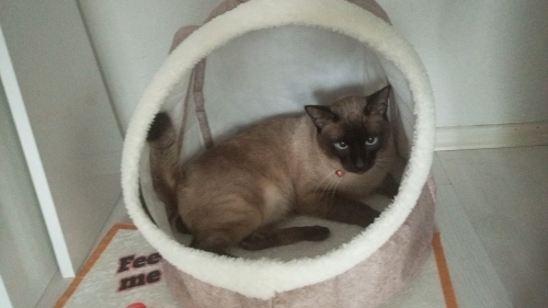 Bej renkli aşışı çipli sakin cana yakın bir kedi kısır değil tırmalamaz ısırmaz annem kediyi istemediği için vermek zorunda kaldık eşyaları falan yanında mama kabı tuvaleti çantası falan