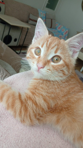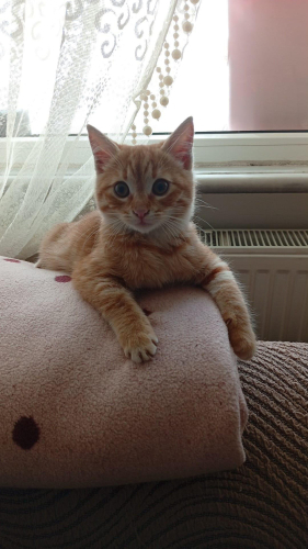 Bu minik kız henüz 2.5 aylık bir sarman, çok oyuncu, uyumlu ve neşeli bir cocuk. Kum ve kuru mama alışkanlıkları var. Yuvalandirdiğim ailedeki kedi strese girdiginden geri donuyor. Yuva bulamazsam sokağa bırakılacak maalesef. Acilinden ömürlük yuva arıyorum. Istanbul Bahçelievler