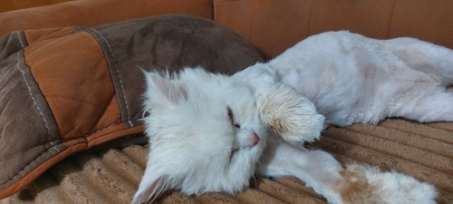 Sokağa atılmış ev kedisi Çok uysal tatlı piresi var veterinere görünmesi lazım benim değil çok uysa çok tatlı öğrenciyim bakamıyorum yaşını bilmiyorum traş ettik