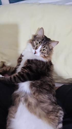Kısır 1 yaşında erkek kedi. Sakin ısırma tırmalama huyu olmayan kendini sevdiren uzun tüylü büyük bir kedi