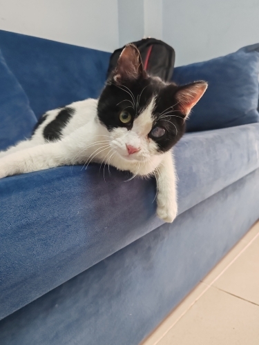 4 aylık erkek Kardeşiyle beraber sokakta bulundu kardeşi kurtarılamadı bu güzellik hayata tutundu Tek gözü görmüyor ancak hiçbir şeyine engel değil Veteriner kliniğinde Aşıları tam Kısırlaştırmasını yine aynı veteriner hekim yapacak ücret almadan Oyuncu sevgi dolu dünya güzeli bir yavru Sözleşme ve takip şartıyla yuvalandırılacaktır