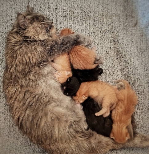 Yavrularımız ev ortamında doğdular. Şu an anne sütü ile besleniyorlar ve sağlık durumları gayet iyi. Sütten tamamen kesildikten sonra, yaklaşık 2–3 hafta içinde yeni yuvalarına gitmeye hazır olacaklar.