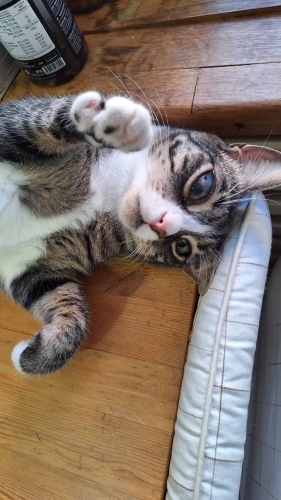 Memoli. 1,5 yaşında, erkek, kısır. Bebekken gözü hasta olduğu için annesi ilgilenmediği için süt tozuyla beslenmiş. Biraz minyon. Aşıları tam, sağ göz mercek alınmış, glokom var. Her ay göz kontrolü var. Çok naif, sevilmeyi çok seviyor.Şu anda geçici yuvada. Çok kalabalık nüfusta mutlu değil. Pencere ve balkonunda filesi olan kedi severler önceliğimizdir.