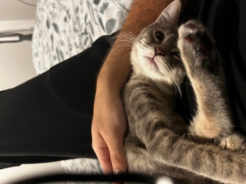 Sakarya’da yaşıyorum, Müjganı bulduğumda küçücük yavruydu, diğer kediler tarafından dışlanmış ve hırpalanmıştı. Yağmurdan dolayı sırılsıklamdı ve bir ağacın altında tepki vermeden bekliyordu. Alıp kuruttuk mama verdik kontrollerini yaptırdık. Havalar düzelene kadar yanımda kalsın istedim. Dışarı bıraktığımda gitmek istemedi ve yanımdan hiç ayrılmadı. Sonra dışarı geri bırakmaya da gönlüm el vermedi zaten. Yaklaşık 6 aydır beraberiz. Aşıları evrakları vs tam. İşten ayrılmak zorunda kaldım aile evine geri döneceğim, evde astım hastası ebeveynlerim olduğu için götüremiyorum. Ona iyi bakacak bir sahip ve sıcak bir yuva arıyorum. Eşyaları ve oyuncakları ile birlikte vereceğim. Çipli olduğundan devir formu da dolduracağız.