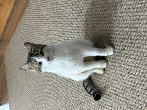 'Maskot 'bu kış çalıştığım özel eğitim merkezine soğuklardan kaçmak için geldi:) çok oyuncu, uykucu, bayaaaa iştahlı ve uyumlu bir kedi. Kendi evimde bir tekirim olduğu için onu sahiplenemiyorum ama ömürlük bir yuvası olmasını istiyorum. Maskot bize gelmeye başladıktan bir ay sonra çenesinde bir yara oluştu ... dişlerine iyi bakamadığı 🙃için dişleri çürüyüp iltihaplanma oluşmuştu 1 hafta tedavi gördü 2 dişi çekildi, ağzında birkaç dişi yok benden önceki öyküsünde o diğer dişlere ne oldu bilinmez🤷🏻♀️ 😅 soğuklardan dolayı üst solunum yollarından etkilendi ve antibiyotik kullandı şuan 1,5 aydır sağlığına kavuştu, keyfi yerinde, iştahı açık, yumuşak koltuk gördüğünde dayanamaz bi 10 saat uyur 🙃Soğukta dışarıda kalmasın bir yuvası ve onu çookk seven bir ailesi olsun maskot çiçek açar 🥹🌸💞😊