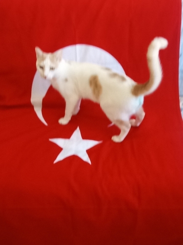 Beyaz postu üzerinde üç kalp şekli bulunan, iç ve dış parazit aşıları, karma aşıları g kuduz aşısı yapıldı, kısırlaştırılmış, çok uslu erkek, oyun sever, kum eğitimi var. Evdeki beş kedi huzursuz ettiği için Eskişehir'de aileye sahiplendirmeyi dusunuyoruz