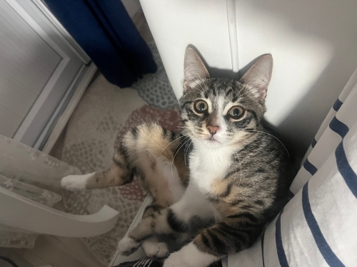 kirpi kendi kedimin yavrusudur poponlarla oyun oynamayı cok sever getir götür komutunu ögrenmiştir kendisi çipli bir kedidir tamamen oyuncudur