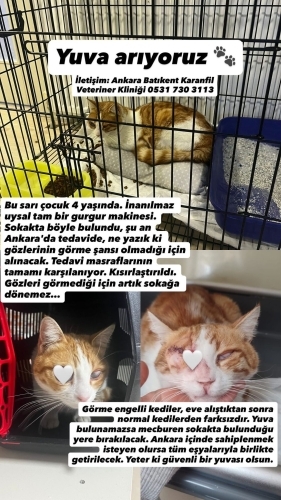 Kısır veteriner kliniğinde ve iki gözü de görmüyor. Lütfen dışarıda yasayamayacak bir cana yuva olun. Sevgi dolu