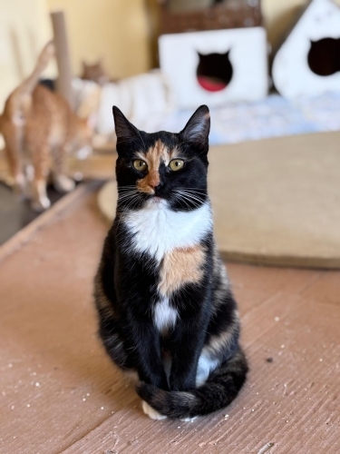 5-6 aylık dişi Tortoiseshell kedi. Annesinden ayırıp sokağa atmışlardı, korumaya aldım. Geçici evinde süt anne ile büyüdü. Sokak bilmiyor. Sakin, kolay adapte olabilecek bu çocuğa ömürlük yuva arıyorum.