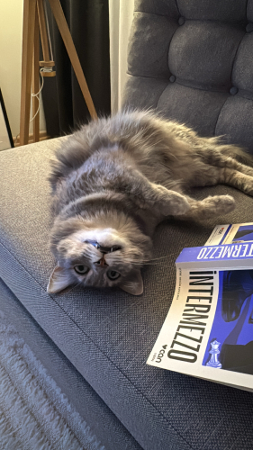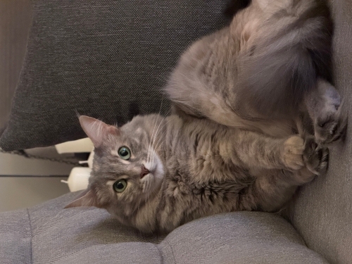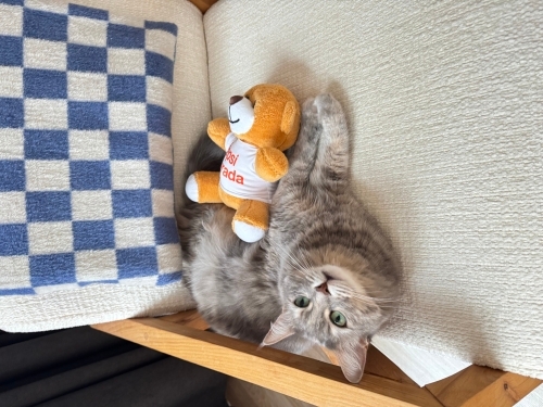 Lila kısırlaştırılmış dişi bir kedi. Sokaktan yavru iken sahiplenildi. Alışması zaman alabilir ancak sorun çıkarmayan bir kedidir. Oyunu sever. Gece uykusunu sever, rahatsız etmez. Dışarı kaçma huyu yok korkar, dışarı çıkmayı sevmez. Eşya tırmalamaz.