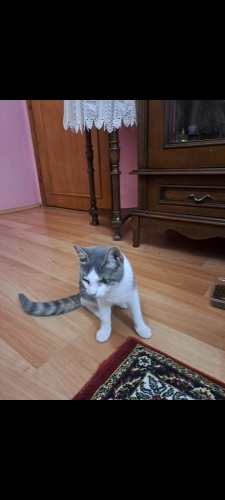 Bu minik yavrumuz sokakta kötü bir durumdaydı. Sokaktaki büyük kedilerden dayak yemiş ve tek gözü enfeksiyondan dolayı görmüyor. Diğer gözünde bir problemi yok. Yaklaşık 3 aylık olduğunu tahmin ediyoruz. Tuvalet eğitimi var ve kuru mama yiyor. Aşırı oyuncu bir kedi. Sahiplenen kişiyi çok mutlu edeceğinden eminiz. Ömürlük yuvası olmak isteyen kişiler iletisim numaram uzerinden bana ulaşabilir. Tek isteğimiz sıcak ve ömürlük bir yuvası olması.