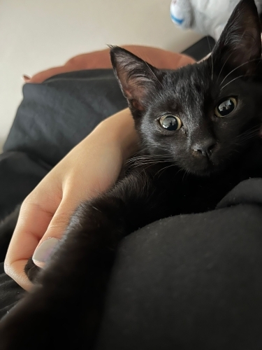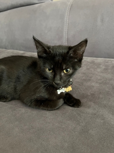Tahmini 3 aylık. Sokaktan kurtarıldı. Mama kum eğitimi var. Aşırı cilveli sürekli sevgi isteyen ve kucaktan inmeyen bir kedi. Kısırlaştırma ve çip şartıyla sahiplendirilecektir. Yer Ankara. Lütfen WhatsApp üzerinden iletişime geçiniz