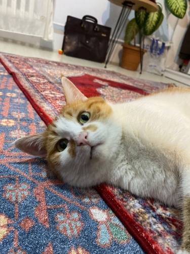 Dişi ve sarman olan, nadir görülen, hem deseni hem kendisi çok güzel olan tekir kedimiz oldukça sevecen, sevgi dolu ve yeni sahibine kavuşmayı bekliyor. Evcil, tuvalet eğitimi var. Aşıları tam. Biz geçici olarak ona bakıyoruz. Eskişehir’de yaşıyoruz fakat sahiplenecek kişinin bizzat şehrine ellerimizde vereceğiz. Yeter ki sevgi dolu bir yuvası olsun