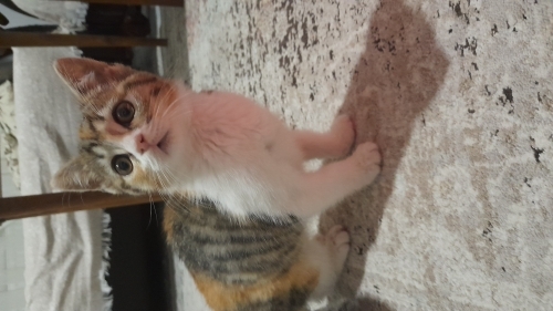 Bir tanıdığımızdan sahiplendik. Kuru mama , tırnak kesimi ,banyo yapma ve kum eğitimi var. Aşısı yok. Bakım ve masraflarını karşılamakta zorlanıyoruz. Kedimiz canayakın, oyunsever bir kedi