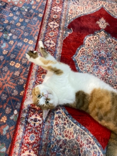 Dişi ve sarman olan, nadir görülen, hem deseni hem kendisi çok güzel olan tekir kedimiz oldukça sevecen, sevgi dolu ve yeni sahibine kavuşmayı bekliyor. Evcil, tuvalet eğitimi var. Aşıları tam. Biz geçici olarak ona bakıyoruz. Eskişehir’de yaşıyoruz fakat sahiplenecek kişinin bizzat şehrine ellerimizde vereceğiz. Yeter ki sevgi dolu bir yuvası olsun