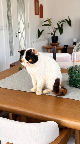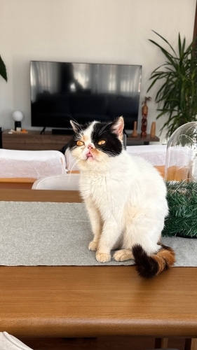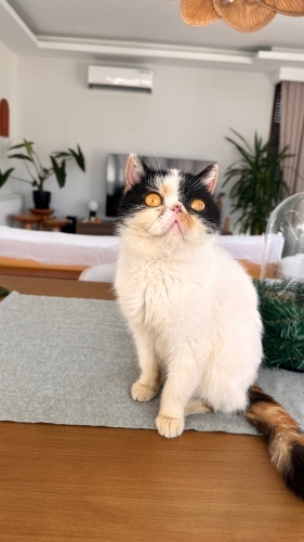 Gofret sokakta bulunan bir kedi. Damızlık olarak kullanılmış ve sokağa atılmıştı. Çok tatlı bir annesi oldu sonrasında fakat geçtiğimiz hafta vefat etti annesi. 2 yıllık rüyası sona erdi. Çünkü annesinin akrabaları istemiyor. Şimdi yeni ailesini takip şartıyla arıyoruz. Çok özel ve güzel bi kedi.çok sakin, tüm hayvanlarla iyi anlaşıyor. Çok sessiz miyavlamayı bile bilmiyor. Onu çok sevecek sorumluluğu yüksek, terketmeyecek insanlar yazsın sadece.