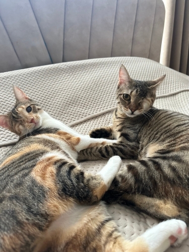 Yuvalandıkları evden geri dönüyorlar bu yüzden acil yuva arıyoruz.Gözlerindeki bebekken geçirdikleri enfeksiyon sebebiyle ameliyat oldu.İkiside kısır ve 8 aylık bu güzel kız kardeşler Hiç sokak görmediler bu yüzden sokakta yapamazlar.ikiside çok insancıl ve temas bağımlısı çok cana yakınlar.Konum Manisa fakat İzmir ve çevresine de yuvalandırma yapabiliriz.