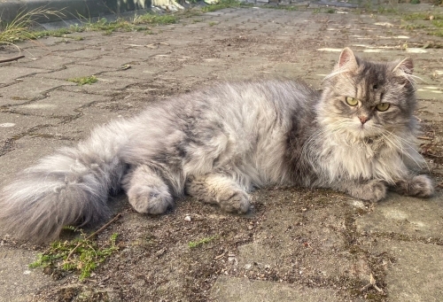 Okulumuzun bahçesine gelen uzun tüylü, insan canlısı, sevilmek isteyip insana sokulan, bir yandan da dışarıda olduğu için ürkek, tahminen evden bırakılmış dişi bir İran kedisi bulundu. Ona sevgi dolu bir yuva arıyoruz.