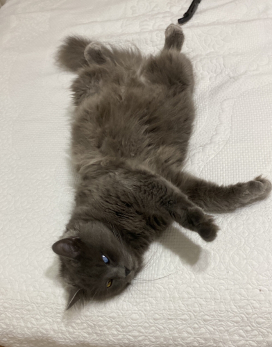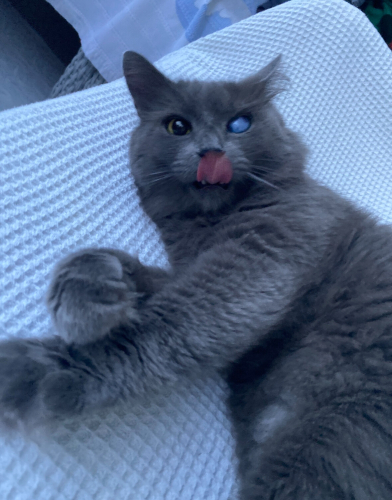 Liya 6-7 yaşında, asıl cinsi Nebelung cinsidir. Görme engelli ama hayatını rahatça sürdürebilen, hassas ve sevilmeyi çok seven bir kedi. 29 Ağustos 2019 tarihinde sahiplendim, o zaman birkaç aylık bir bebekti ve ölmek üzereydi, hayatta tutan Rabb’ime şükürler olsun. Liya, ben sahiplenmeden önce yaşadığı travmalar nedeniyle diğer hayvanlardan korkuyor ve yabancı misafirlere karşı çekingen davranabiliyor, dışarıya çıkmaktan da hoşlanmıyor.