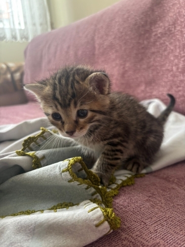 Bu minik yaklaşık 3 haftalık erkek bir yavru kedi. Çok küçük olmasına rağmen şimdiden inanılmaz sevgi dolu bir karakteri var. Kucağa alındığında hemen motor gibi pır pır sesler çıkarıyor ve patileriyle masaj yapmaya başlıyor. İnsan temasıyla büyüdüğü için oldukça uysal ve sevecen. Şu anda süt tozu ile besleniyor ve çok güzel iştahlı. Gün içinde bol bol uyuyor, uyandığında ise etrafı merakla keşfetmeye çalışan çok tatlı bir minik. Çok küçük olduğu için sevgi dolu ve sorumluluk sahibi bir yuva arıyoruz. Onu sahiplenecek kişinin yavru bakımını bilen ya da öğrenmeye istekli olması bizim için önemli. Amacımız bu minik masaj ustasının hayatını güvenli ve sevgi dolu bir evde geçirmesi. Eğer bu küçük kalp hırsızına bir yuva olmak isterseniz bizimle iletişime geçebilirsiniz. Şimdiden yeni ailesini sabırsızlıkla bekliyor. 🐱💛